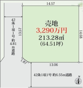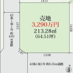 | 設備・条件 | 都市ガス公営水道排水下水●建築条件なしの場合3,440万円 ●建築条件付の場合 南西角地 限定1棟 土地面積64.51坪 土地3,290万円+建物参考プラン価格1,770万=4,990万円 充実の設備仕様●ベタ基礎●床下収納●1坪タイプシステムバス●浴室乾燥機●洗面化粧台●シャワートイレ●24時間換気システム●ウォークインクローゼット●シューズインクローゼット●TV付モニターフォン●建物10年保証●フラット35S ●住宅ローンお任せ下さい。(自営業・派遣社員・過去に住宅ローンが組めなかった方など) ●下記キャンペーン実施中 ①当社、《手数料》 キャンペーン実施中(弊社ホームページに多数あります。) ②《買い取り》 キャンペーン実施中 詳しくはお問い合わせください。 | ||